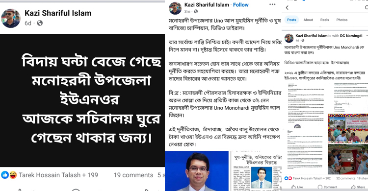 নরসিংদীর মনোহরদী উপজেলায় কথিত সাংবাদিক কাজী শরিফুল ইসলাম ওরফে শাকিলের বিরুদ্ধে ভুয়া সাংবাদিকতা, চাঁদাবাজি, হুমকি এবং সামাজিক যোগাযোগমাধ্যমে অপপ্রচারের অভিযোগে তীব্র ক্ষোভ ও নিন্দার ঝড় উঠেছে। তার কর্মকাণ্ডে বিব্রত স্থানীয় রাজনৈতিক নেতৃবৃন্দ, সরকারি কর্মকর্তা, শিক্ষক সমাজ ও সাধারণ মানুষসহ বিভিন্ন শ্রেণি-পেশার মানুষ।